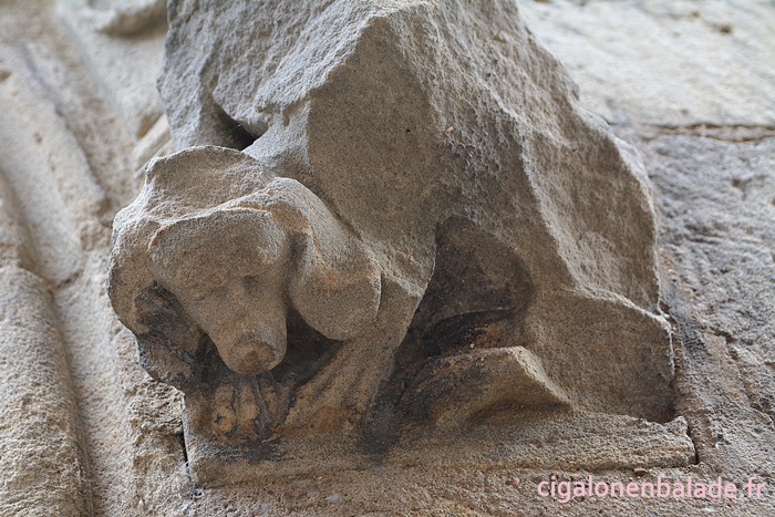 L'archivolte est garnie de feuillages et d'animaux fantastiques.