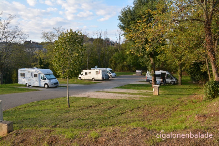 Sur l’aire, gratuite, trois camping-cars et un plus grand sur le parking du haut. Si l’endroit est sympa, il est loin d’être plat, un devers difficile à rectifier.