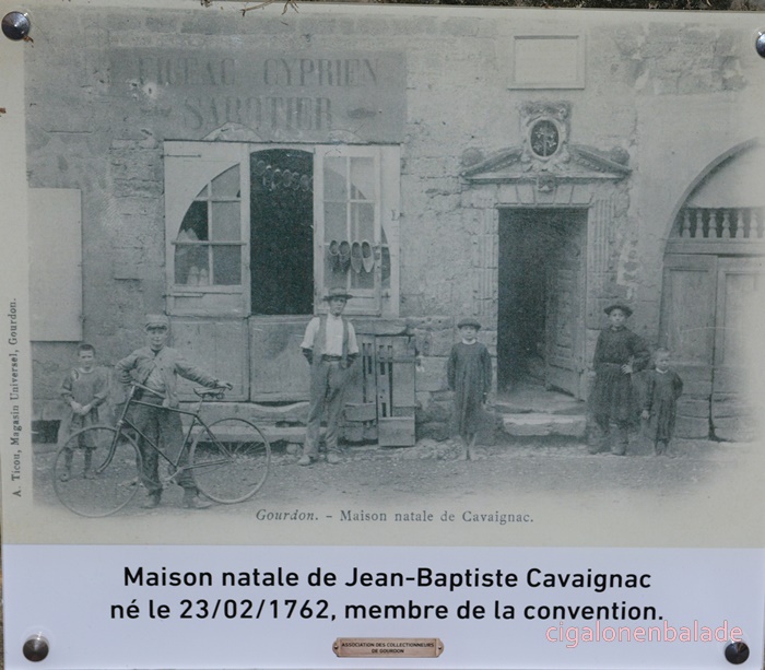 Nous poursuivons par le quartier juif ou juiverie qui est un lieu traditionnel des cités médiévales. A Gourdon, il s’est installé au pied du château et aboutit à la maison natale de Jean-Baptiste Cavaignac, né en 1762, membre de la Convention. La maison est remarquable par sa porte sculptée, présentant une allégorie des vices et des vertus.