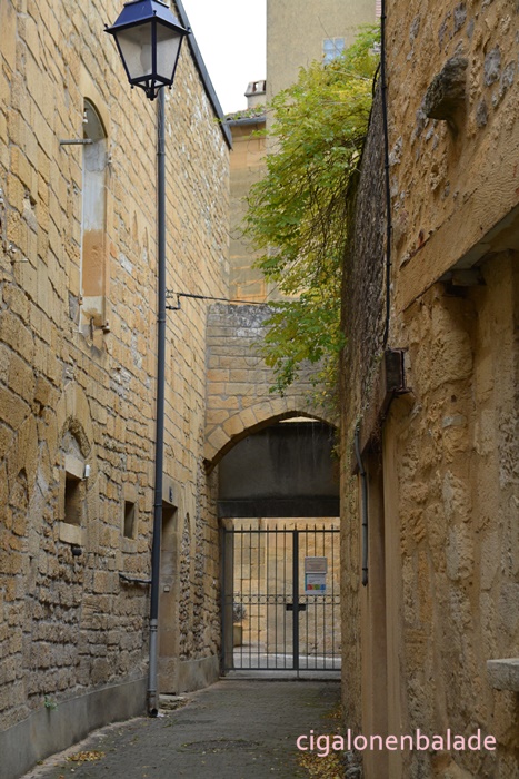 Pour revenir à notre point de départ, nous empruntons la rue Sourde, passage et coupe-feu, typiquement médiéval qui doit son nom au fait qu'aucune fenêtre ne s'y ouvrait et qu'on pouvait y passer en toute discrétion.