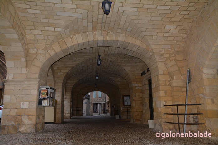 Après être passés sous un pontet, nous nous engageons dans la rue de l’épinglier. A Gourdon, l’épinglier est resté légendaire à cause de son rôle funéraire présumé. En effet, il était chargé d’envelopper les défunts dans leur linceul qu’il fermait lui même par des épingles. Drôle de métier déjà à cette époque !