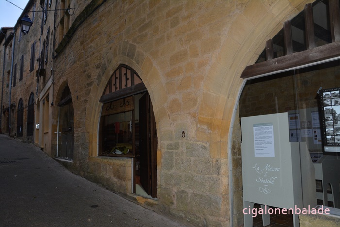 La maison du sénéchal, ancienne échoppe de drapiers a été transformée en musée. Une belle arcade. Ces boutiques se composaient ordinairement d’une salle s’ouvrant sur la rue par un grand arc prenant toute la largeur de la pièce, avec un mur d’appui pour poser les marchandises.