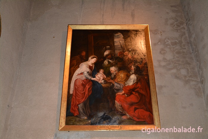 tableau de l'Adoration des mages exécuté en 1860 par Henriette Haillot; C'est une copie de Rubens dont l'original se trouve au Louvre.