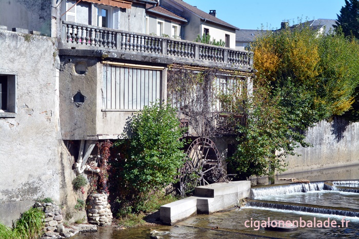 De l'autre côté de la Bave, d'anciens ateliers et la roue à aubes d'un ancien moulin.