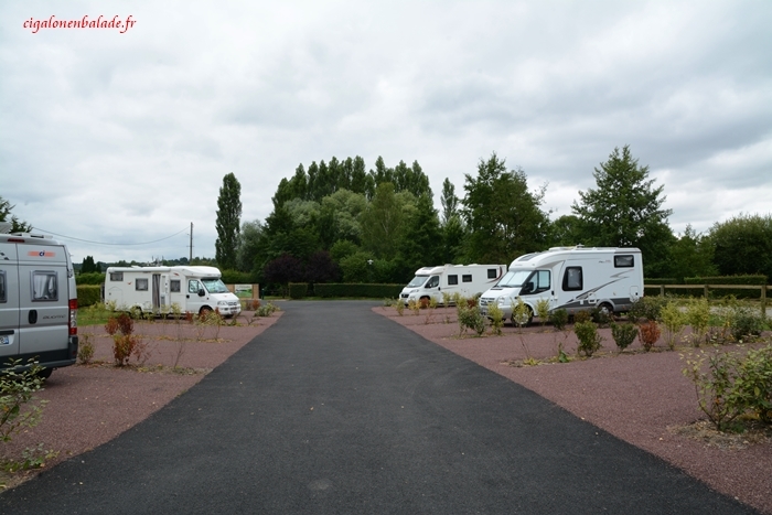 Il fait gris mais il ne pleut pas. Nous prenons la direction de Cormeilles avec l’objectif de visiter une distillerie. Nous sommes toujours dans l’Eure et nous venons d’aborder le pays d’Auge. Nous y trouvons une aire de service toute neuve, inaugurée au printemps. Elle est à un jet de pierre du centre village.