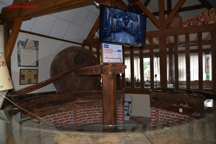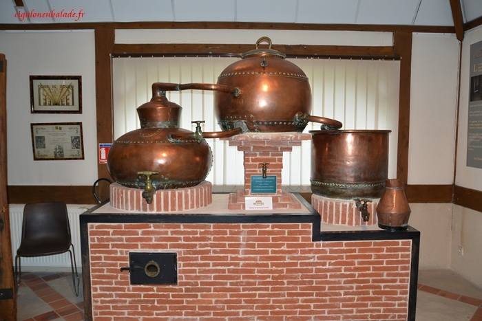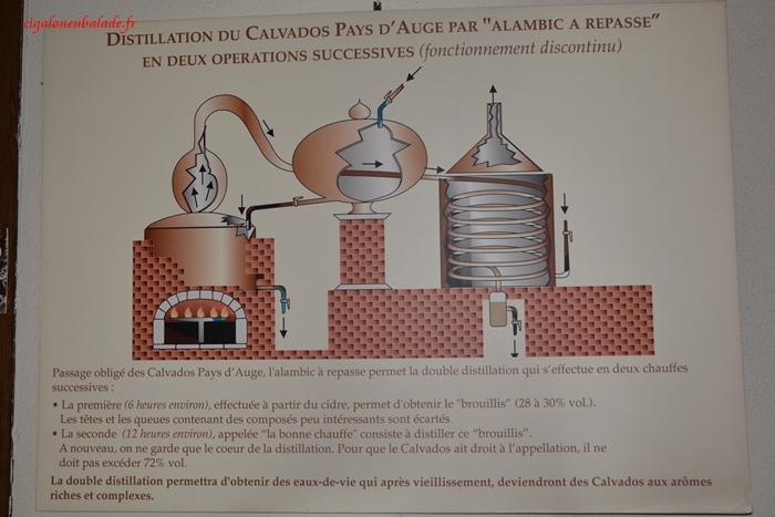 Après le repas, nous partons pour la distillerie. C’est notre jour de chance puisqu’une visite est sur le point de démarrer. Créée en 1820, Busnel est la première grande maison de Calvados de Cormeilles. La visite débute par une petite exposition avec panneaux explicatifs.