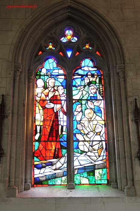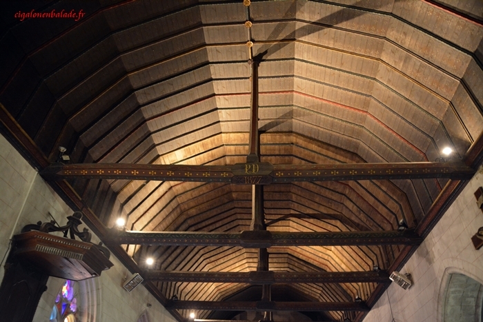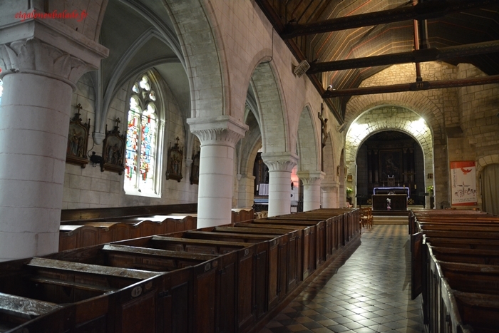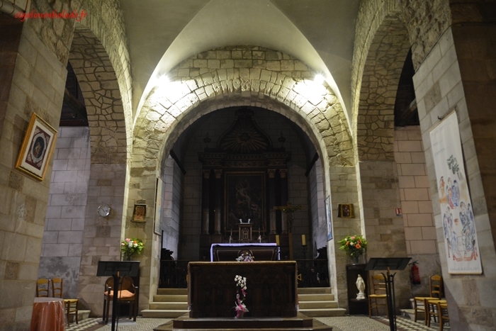 L’église Ste-Croix a une construction curieuse, un seul bas-côté qui la rend boiteuse et une nef accusant une pente de 9%…. L’orgue et l’autel majeur sont au même niveau ! Le curé ne peut pas abuser du vin de messe !