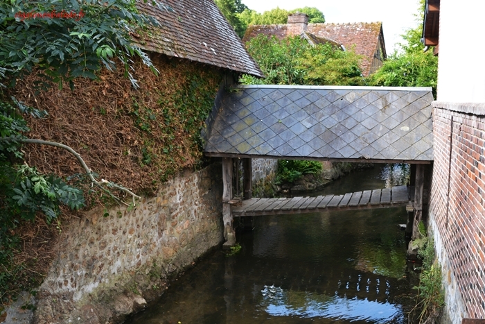 Alors que nous allions repartir, nous croisons notre accueillante FP qui à travers de petites ruelles nous présente la face cachée du village. Nous découvrons, pour notre plus grand plaisir, de belles maisons s’étirant le long de la Risle, traversée de petits ponts croquignolets. Sans elle, nous serions passés à côté de ces petits joyaux.