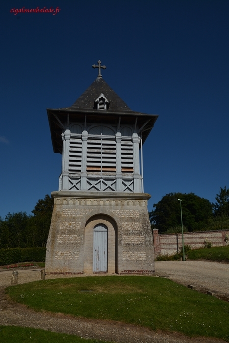 Le beffroi de la fin du XIXème siècle est posé à côté l'église. L'abbé de Beauvoir a légué 15000 francs à la commune pour l'achat de trois cloches que le lanterneau à la croisée du transept ne pouvait pas supporter.