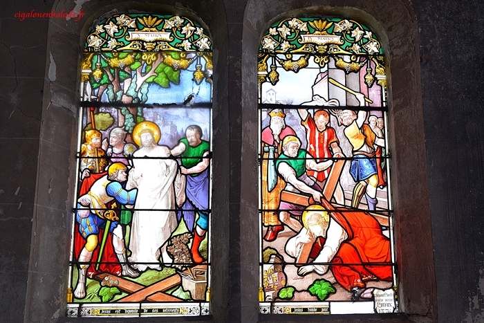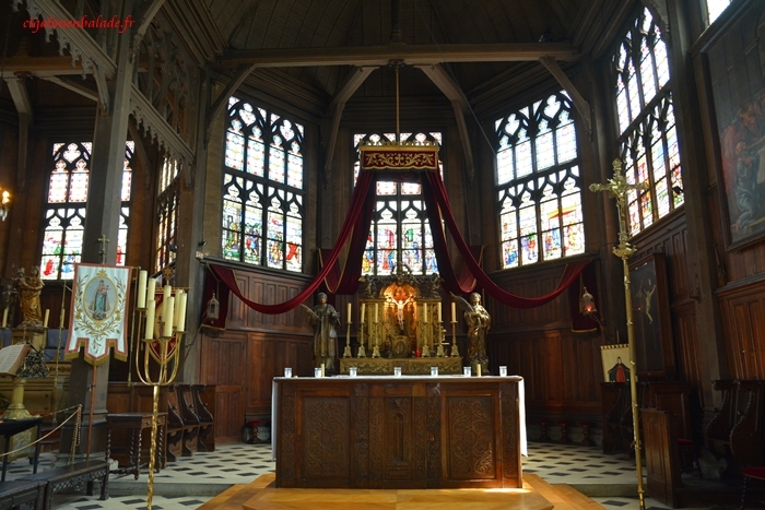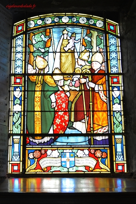 La nef est tapissée d’ex-votos et éclairée de vitraux.