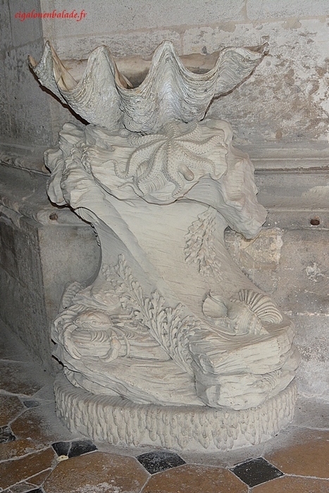 À l’entrée de véritables coquilles ont été rapportées par des marins honfleurais pour servir de bénitiers.