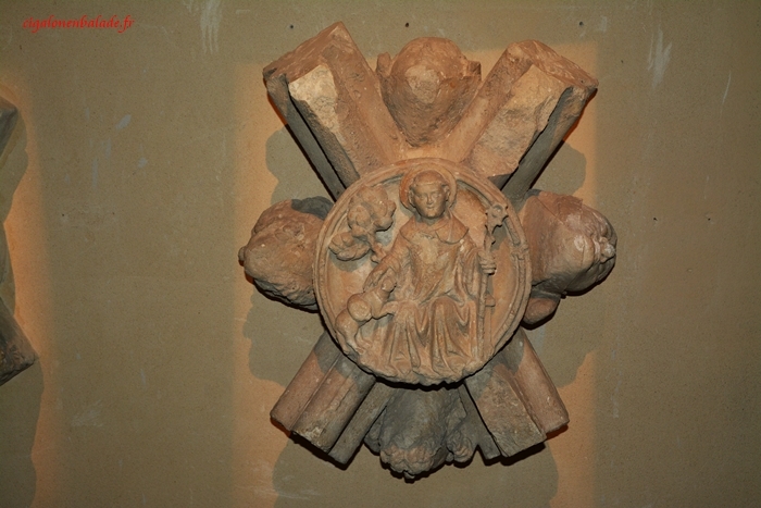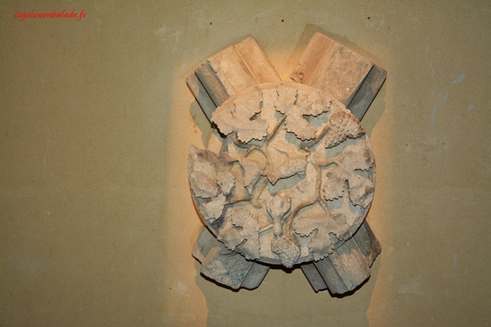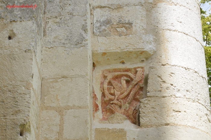 Le chapiteau roman dit à l’oiseau présente, enserré dans un pilier gothique du XIIIème siècle, un oiseau coloré.