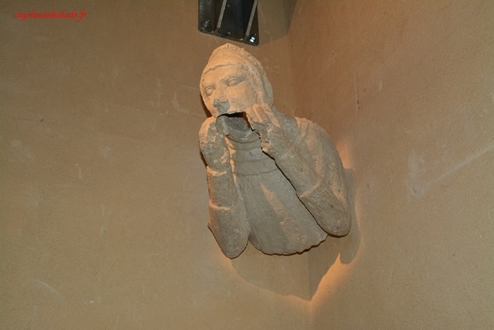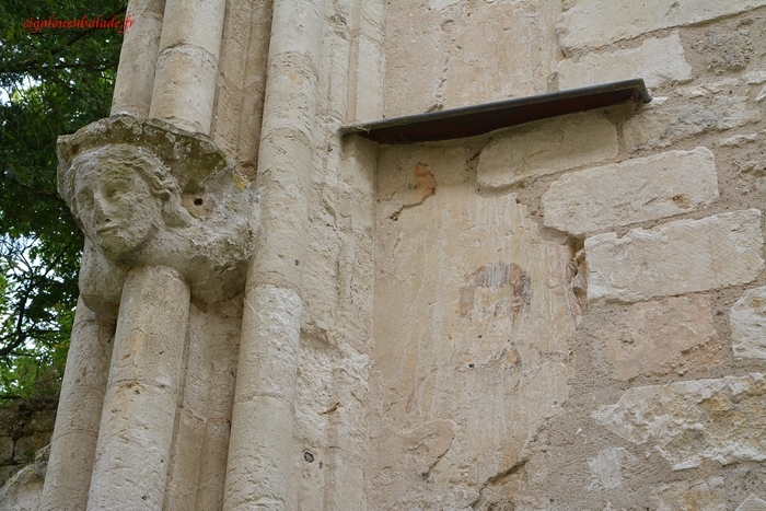 Dans un coin, à côté d’une sculpture sur un pilier, on remarque, certes assez difficilement, un homme peint, représenté en buste. Ce sont les seules traces carolingiennes qui subsistent après que le monastère ait été détruit par les Vikings au IXème siècle. Le restant de l’édifice a été entièrement reconstruit aux XIIIème et XIVème siècles.