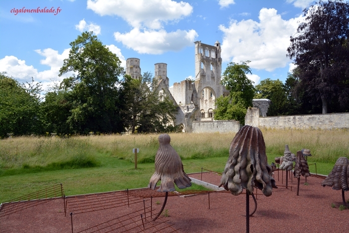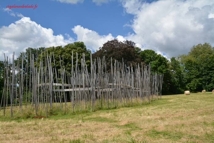 Derrière l'abbaye, dans un grand jardin, l'art contemporain environnemental s'est installé pour neuf mois. Ce n’était pas le but de notre visite alors je n'ai photographié que ce que nous avons vu et je n’ai pas recherché les autres.