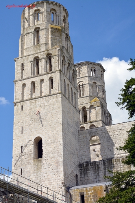 L’abbatiale Ste-Marie présente une façade imposante, austère entre ses deux tours hautes de 46 mètres. C’est un exemple d’architecture romane normande du XIème siècle.
