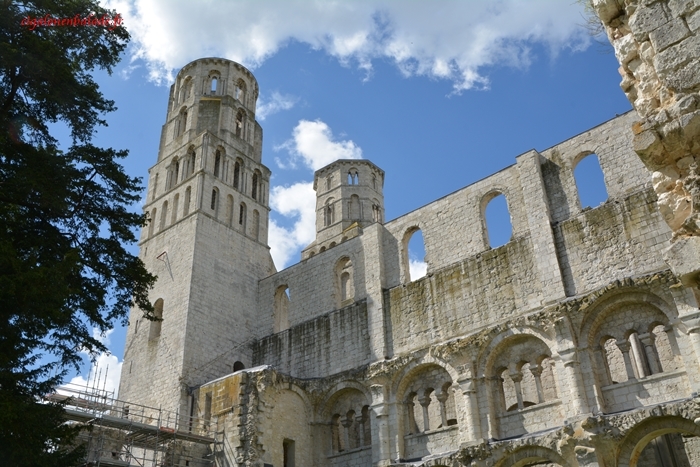 St-Philibert fonde Jumièges en 654. Elle connaît immédiatement un développement important seulement interrompu par les invasions vikings entre 841 et 940. Sa renaissance se fera avec le soutien des ducs de Normandie. Après la Révolution, l’abbaye est vendue et transformée en carrière de pierres ! En 1852, elle est sauvée par la famille Lepel-Cointée et rachetée par l’état en 1946.