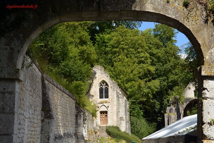 Notre visite de l'après-midi est l'abbaye de Notre-Dame de la Fontaine Guérard à Radepont, un modeste prieuré de femmes fondé vers 1190 par le comte Robert de Leicester. Les moniales décident de s'affilier à Cîteaux. A la Révolution, les bâtiments sont vendus comme biens nationaux alors que 12 moniales et 4 sœurs converses y résident encore. L'abbaye sert de carrière de pierres pour la construction de la première filature de Fontaine-Guérard. En 1937, le dernier propriétaire lègue le domaine à l'Armée du salut. En 2013, l'ensemble est revendu à un propriétaire privé qui l'ouvre alors au public.