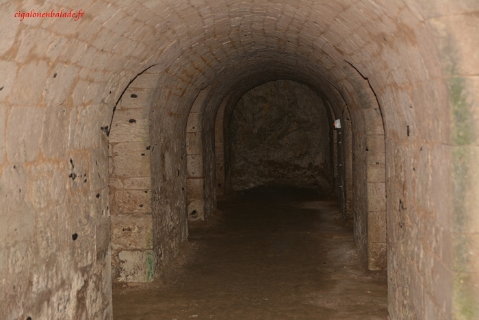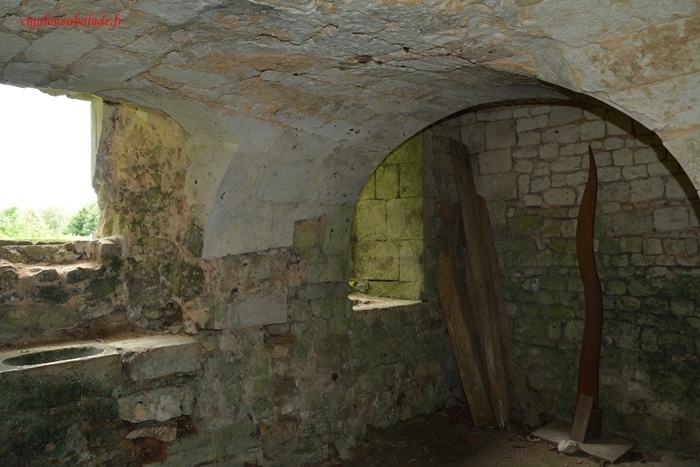 Sous la chapelle le cellier, une grande salle rectangulaire qui se termine par une galerie voûtée en plein cintre qui s’enfonce dans la colline jusqu’à 30 mètres. Les alvéoles sur les côtés servaient pour stocker le vin.
