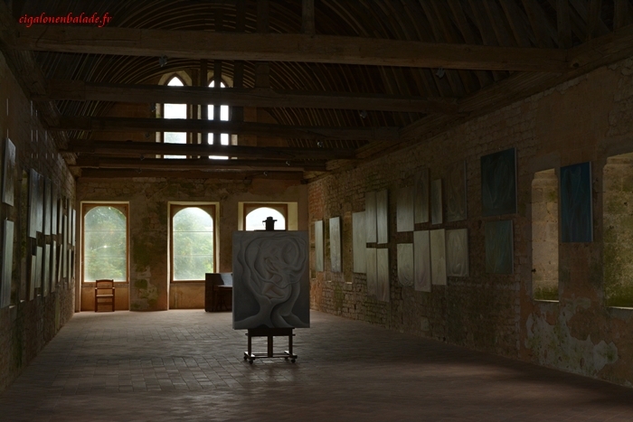 Le dortoir à l’étage, éclairé d'étroites fenêtres à lancettes, sert de salle d'exposition. Une fenêtre, une chambre de moniale … Pas de quoi faire la fête ! Par contre une belle charpente recouvre l'ensemble mais elle n'est pas d'origine car modifiée au XVIIIème siècle. Le tour est vite fait ; l'exposition ne nous intéresse pas !
