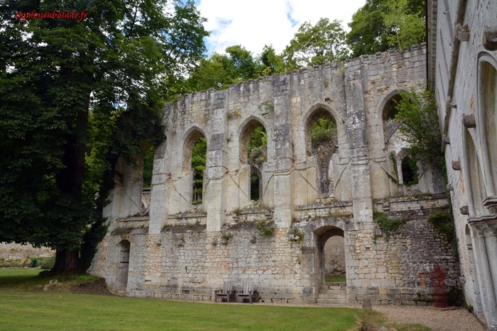 Mais le plus beau reste à venir…. Car devant nous se dressent les ruines majestueuses de l'abbaye. Un petit plan remis à l'entrée nous permet de nous repérer mais surtout de nous imaginer l'abbaye au temps de sa splendeur. Seule subsiste en partie l'église abbatiale entourée de quelques pièces.
