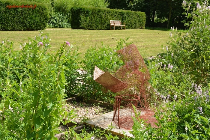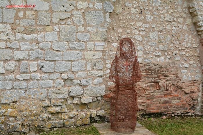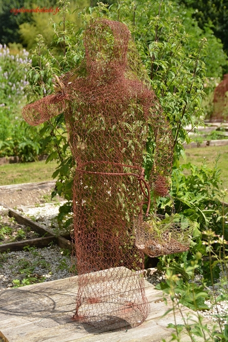 Des sculptures en treillis disséminées un peu partout autour de l’abbaye figurent les moines en activité.
