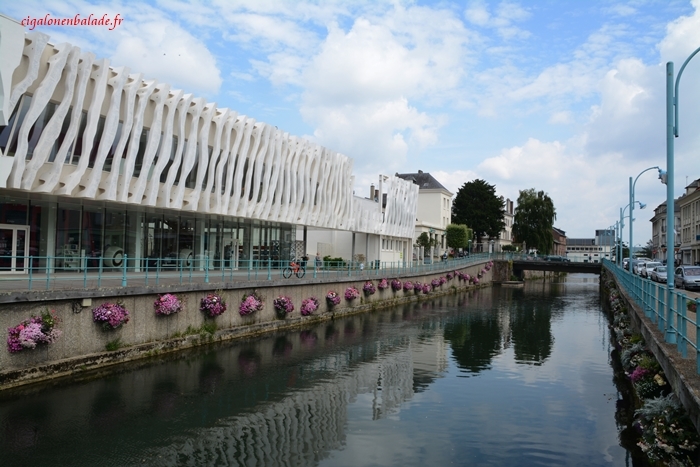 Nous longeons le quai François Mitterrand où se dresse la médiathèque flambant-neuve, une construction moderne dont les délais de construction et le budget ont explosé. Les travaux ont débuté début 2012 pour ne s'achever qu’à l’automne 2015 !