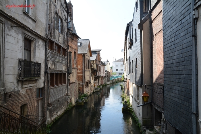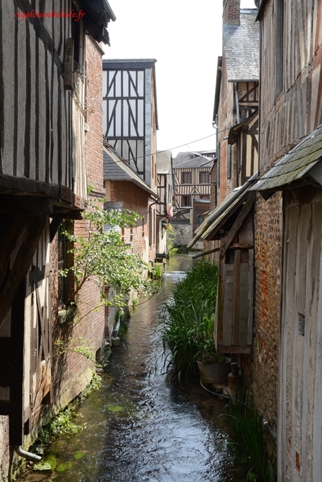 Les multiples canaux qui la traversent et dans lesquels se mirent les maisons à pans de bois et les anciens séchoirs des tanneries lui donnent le surnom de la Venise normande. Les maisons pouvaient avoir un accès direct à l'eau. Grâce à cette facilité d'accès à l'eau l'industrie de la tannerie a pu se développer.