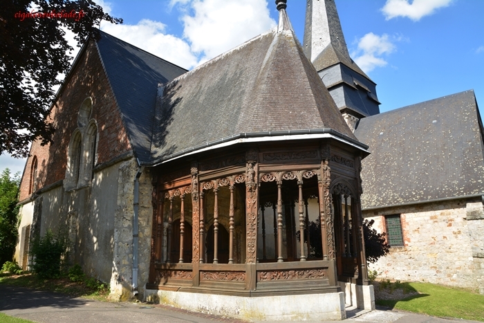 Elle est surtout remarquable pour son porche du XVIème siècle en chêne sculpté. On ne sait pas vraiment qui en est le commanditaire mais sûrement quelqu'un de très riche.