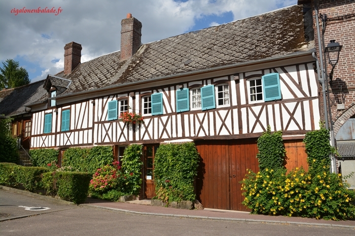 Et pour terminer notre promenade à travers Ry, une jolie longère, n’ayant aucun lien avec le roman de Flaubert mais bien dans le style normand et une jolie avancée à pans de bois.