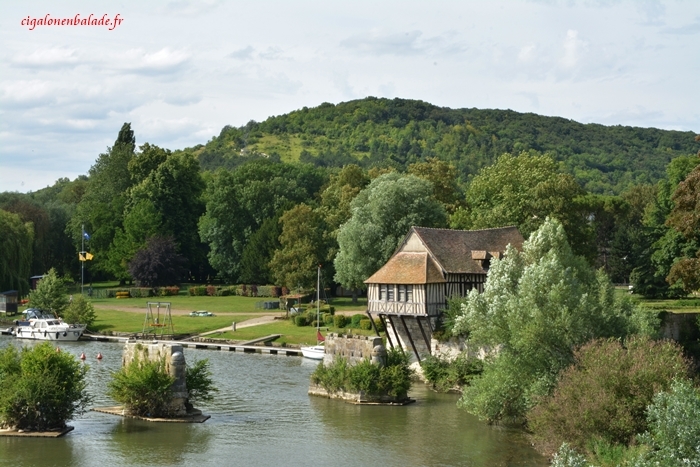 À Vernon, nous nous arrêtons au vieux moulin. Malheureusement la façade principale du moulin n'est pas au soleil. Je fais donc le tour et je découvre que la ville de Vernon, propriétaire du bâtiment, n'a rénové que la façade visible du pont !