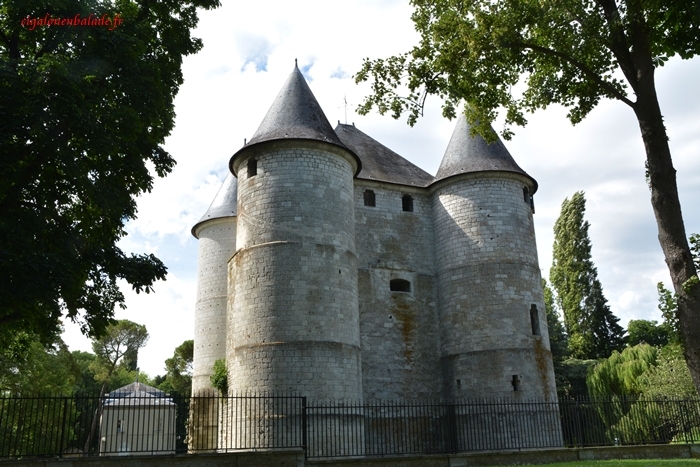 Derrière le moulin, le château des tourelles. Un donjon carré flanqué de 4 tourelles crénelées d'une hauteur de 20 mètres est le dernier témoignage de l’époque médiévale. Le châtelet contrôlait et protégeait le pont et autorisait l’accès à la ville fortifiée.