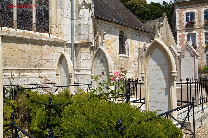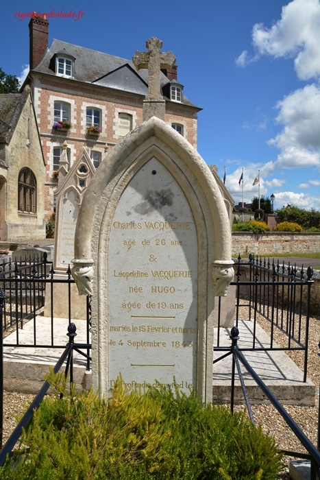 A côté, dans l'ancien cimetière, nous trouvons ce que nous cherchions, à savoir la tombe de Léopoldine Vacquérie, la fille aînée de Victor Hugo… Les stèles ogivales en pierre calcaire inscrites aux MH depuis 2001 ont été restaurées en 2016.