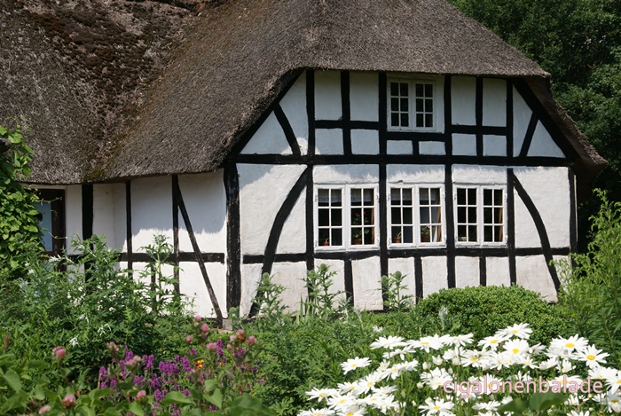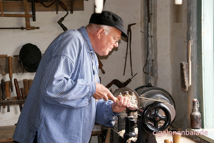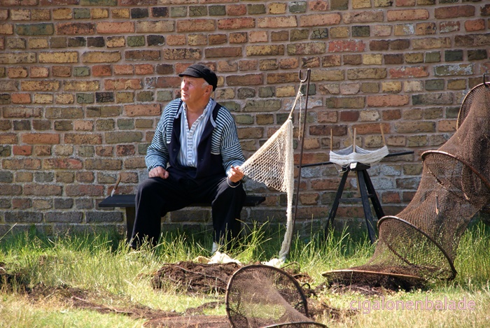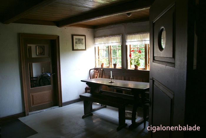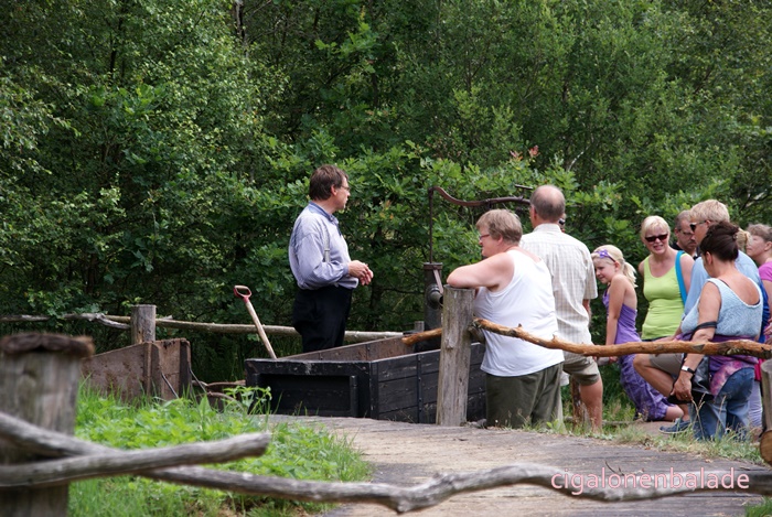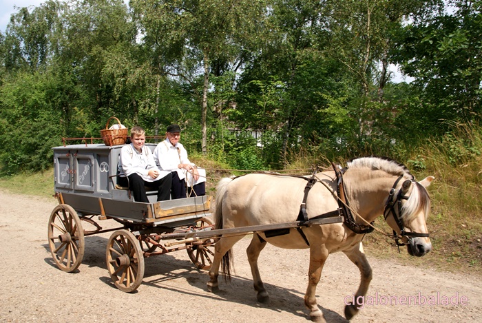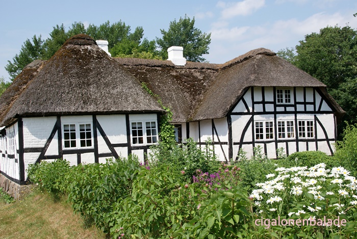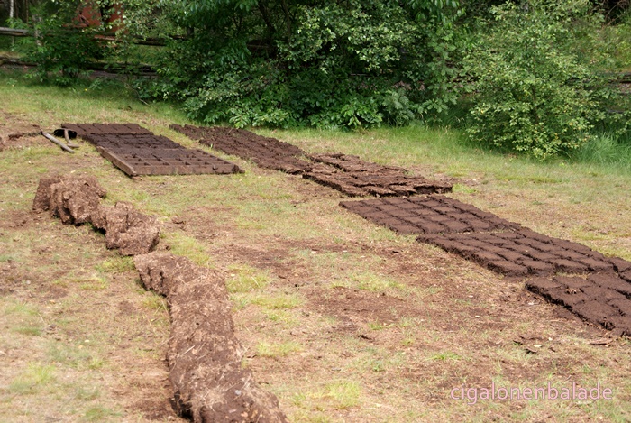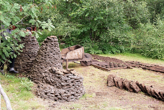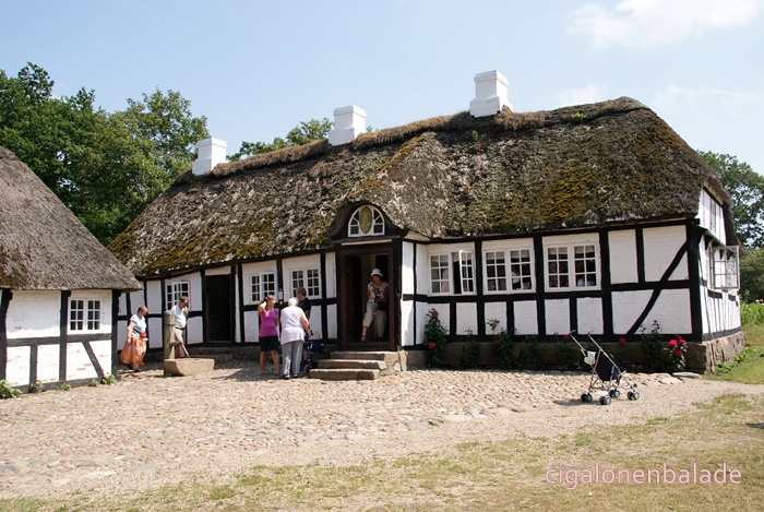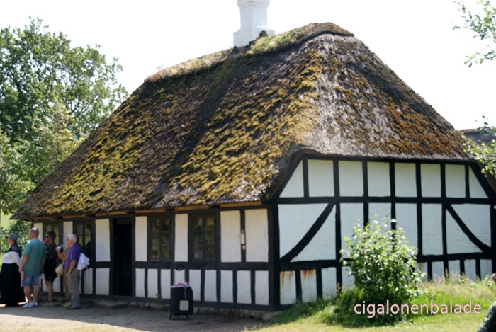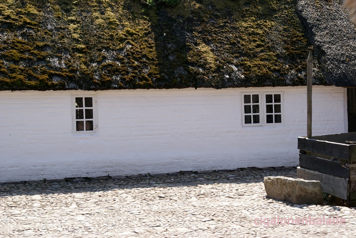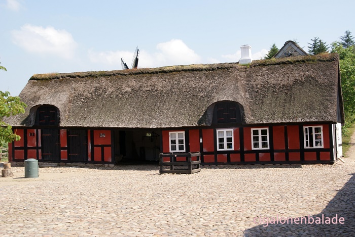 Ue figurant qui fabrique des briques de tourbe parle bien l’allemand et même un peu le français. Il répond très gentiment à toutes les questions que je lui pose sur le Danemark. Il m’apprend entre autre que les voitures danoises n’ont pas les mêmes plaques d’immatriculation selon leur utilisation. Les voitures avec les plaques jaunes sont les voitures d’entreprise, moins taxées, les autres les voitures particulières.