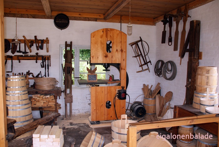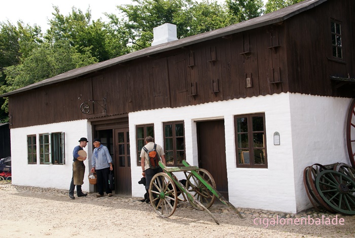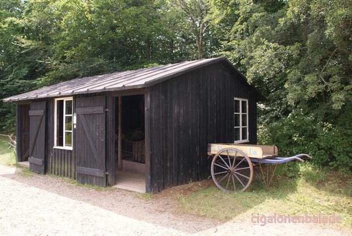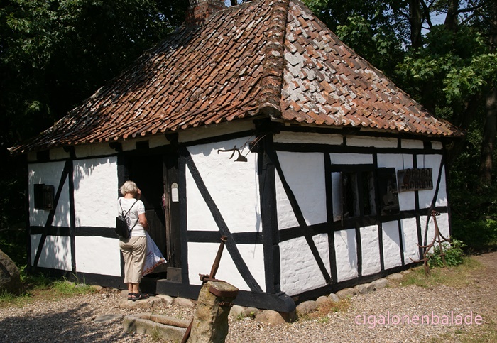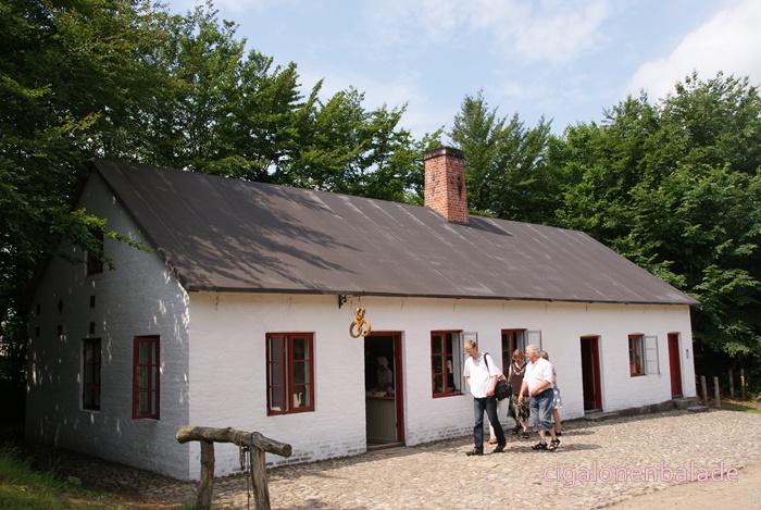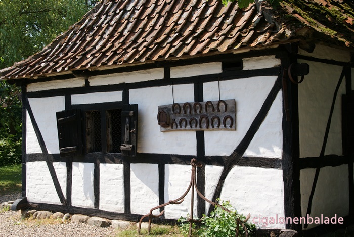 Une forge du milieu du XVIIIème siècle, vient de Vester Kærby sur Funen. A l’origine le bâtiment n’avait ni toit, ni fenêtres. Il a été modifié au milieu de XIXème siècle. Le forgeron était un notable au village car il servait aussi à l’occasion de dentiste et de vétérinaire.