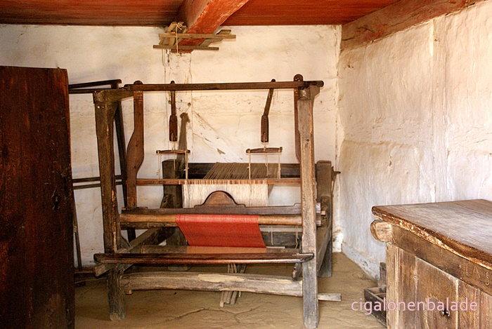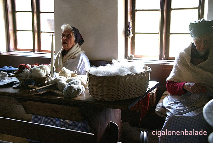 A l’intérieur un atelier filage et tricot.