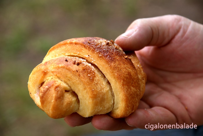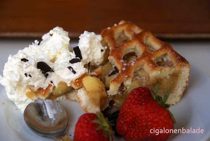 Nous arrivons à la maison, du gardien du domaine de Sostrop, construite vers 1800. Dans la cour, des tables et des chaises. Nous pensions déjeuner sur place mais à part des hot dogs et autres saucisses avec frites,il n’y a rien qui nous convienne. Nous nous contentons d’une tarte aux pommes avec chantilly. Pas très équilibré tout ça mais si bon !