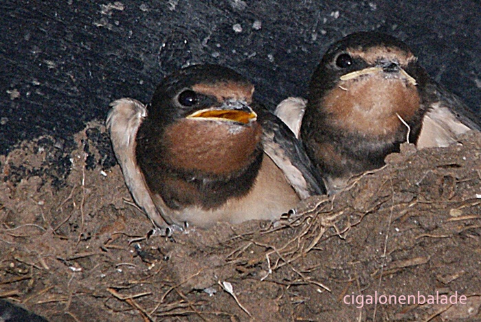Avant de quitter les lieux, nous avons le plaisir d’observer des nids d’hirondelles. Les petits sont déjà bien costauds et pas loin de s’envoler.