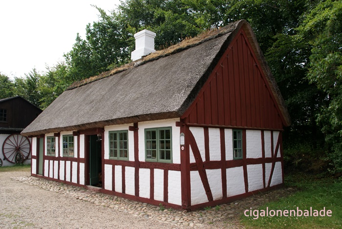 La maison du forestier est une maison d’habitation de 1850, provenant de la forêt de Fjeld, au sud-est de Randers. Elle est totalement couverte de chaume.