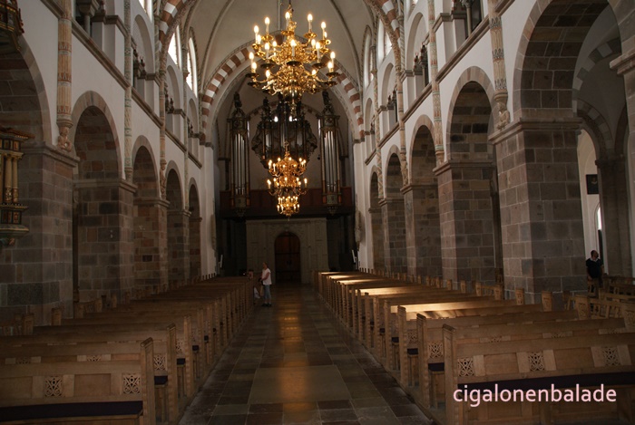 La cathédrale, construite entre 1150 et 1250, mêle intimement le style roman et gothique. Elle allie le tuf germanique aux briquettes rouges de la région. A l’origine, elle était équipée de deux tours carrées. L’une s’est écroulée lors de la messe de Noël en 1283.
