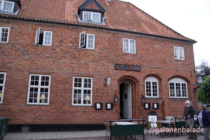 Nous retournons en ville et reprenons le circuit du veilleur de nuit. L’hôtel Dagmar, en briques brunes, reconstruit en 1581 après le grand incendie de la ville un an plus tôt, jouxte l’OT.