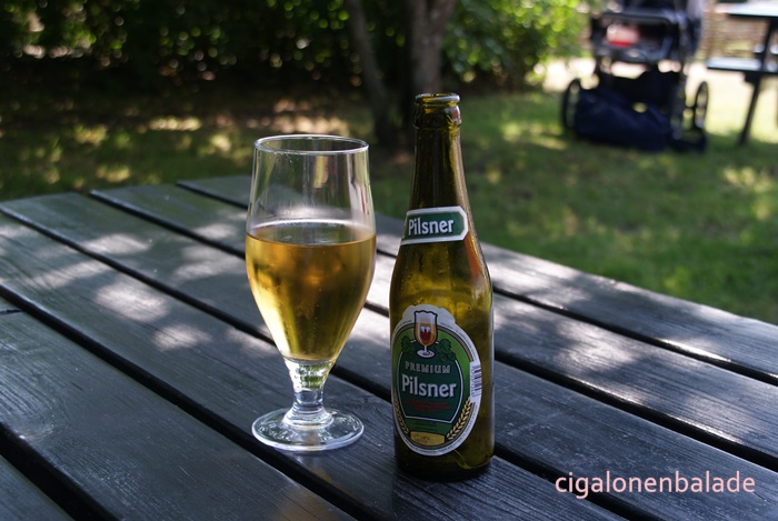 Une halte à la taverne nous permet de nous rafraîchir un peu. Une bière comme tout bon Danois pour Gabriel tandis que moi, je savoure un jus de pomme bio bien frais. Les chiennes se sont largement abreuvées lors de leur baignade et profitent de ce petit moment de repos pour dormir !