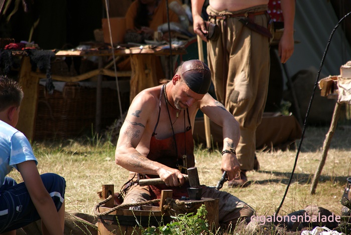 Seuls les forgerons montrent un peu de courage en travaillant près du feu mais ils ont embauché un gamin pour manier le soufflet. A voir sa figure rouge écarlate, l’effort doit être surhumain !