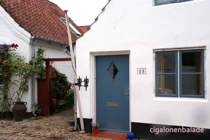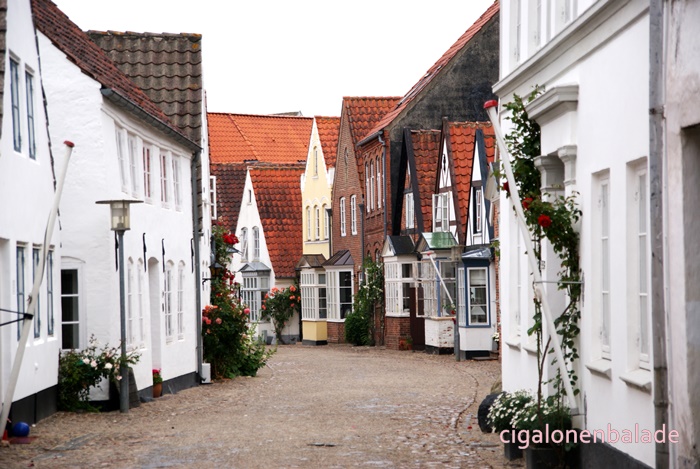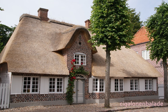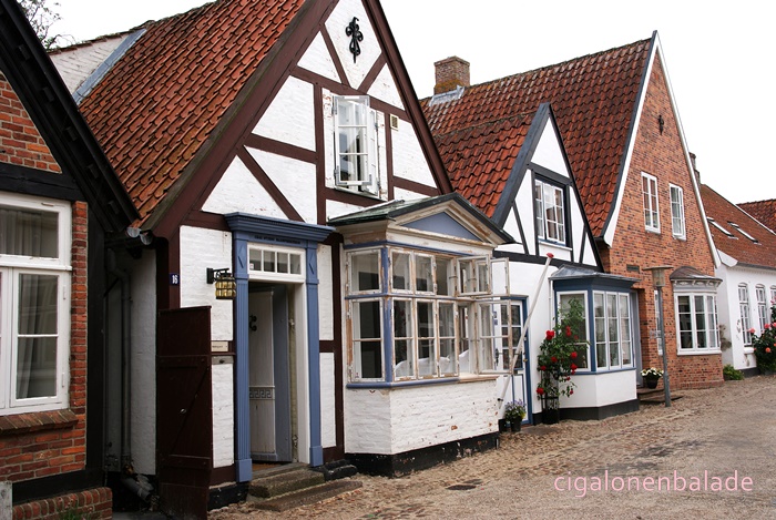 Nous terminons la visite par la plus vieille rue, l’Ulgade bordée par des maisons basses colorées et arborant des bow-windows. Le pavage de la rue vient d’être refait et une épaisse couche de sable le recouvre encore. C’est un quartier croquignolet dans lequel j’aurais pu rester de longues heures mais la fine pluie qui tombe par intermittence nous incite à retourner au camping-car avant d’avoir à affronter un déluge !