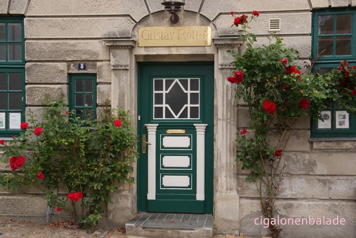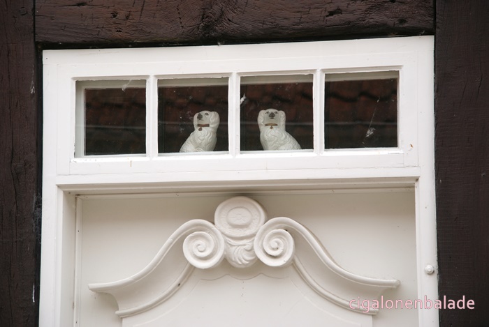 Aux fenêtres, pas de rideaux mais des objets de décoration hétéroclites ou rassemblés par thèmes. Certaines maisons ressemblent presque à un musée ou à une boutique d’objets de décoration. Et comme je n’arrive pas encore à comprendre ce qui est inscrit sur les plaques, je ne suis pas sûre qu’il s’agit toujours de maisons d’habitation.
