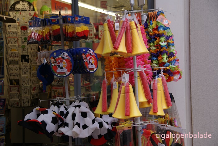 De nombreuses vitrines font référence au Mondial qui a lieu en ce moment. Beaucoup de voitures arborent d’ailleurs un ou plusieurs drapeaux de l’équipe nationale.