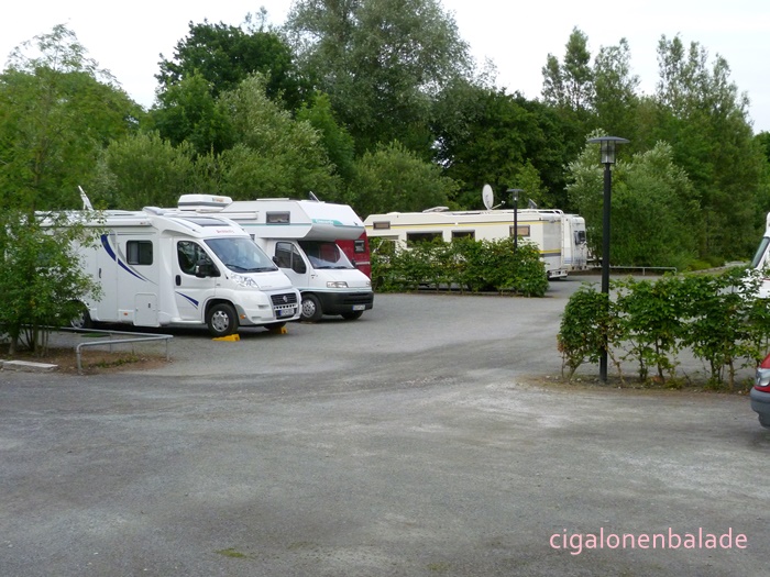 Située en face de la piscine, l’aire offre une vingtaine de places. Le paiement de la nuitée s’effectue dans le parc voisin mais à notre arrivée, il n’y a plus personne. Tant pis … ce sera nuit gratuite !