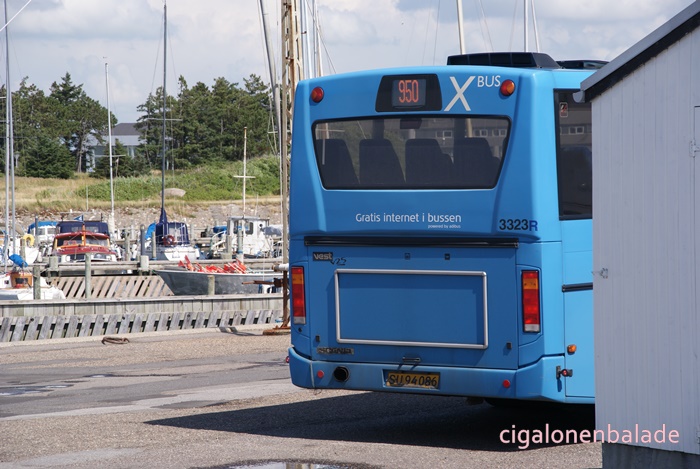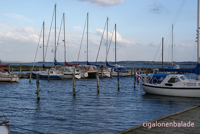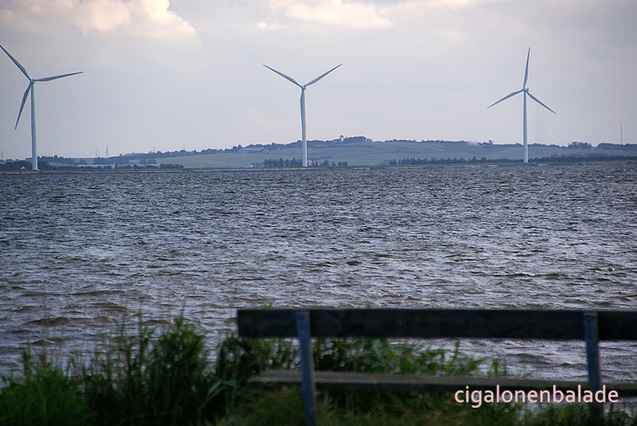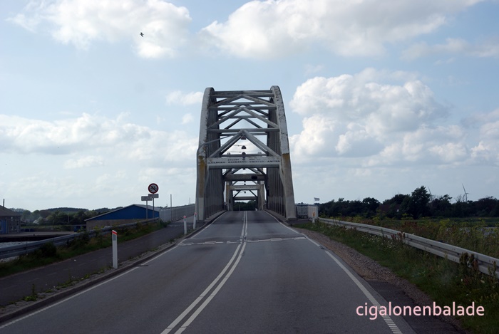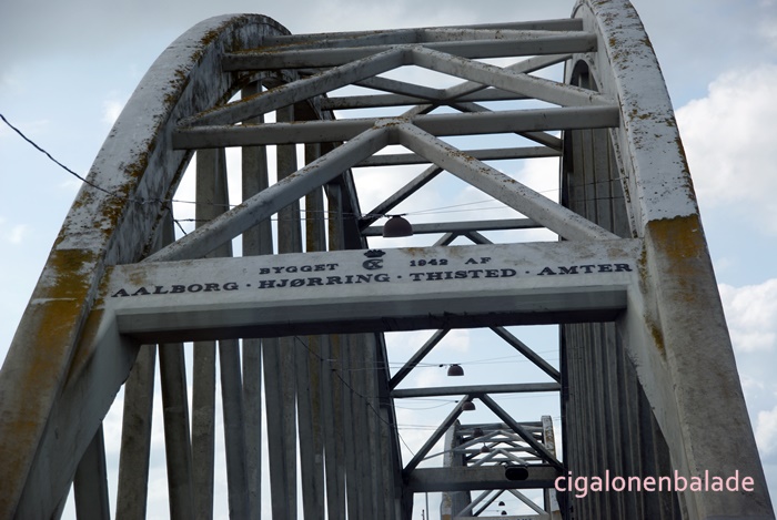 Nous le traversons à son point le plus étroit (environ 150m) en empruntant le pont de l’Aggersund (l’Aggersundbroen). Le pont a été construit en 1942, à une époque où cette partie du Danemark était encore allemande. Il a été renforcé en 2000 pour augmenter sa capacité portante. Il mesure 228 m de long sur 6 m de large + 2 m de trottoirs.