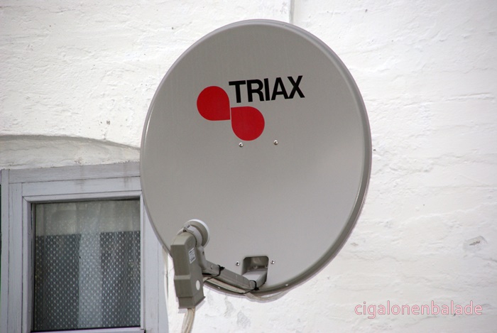 Un petit tour dans le village montre que nous sommes à la campagne. La désertification a fait des ravages ici aussi. Des maisons sont à vendre, d’autres sont en réfection. Nous sommes loin des maisons pimpantes de la région de Ribe ! Une petite photo encore pour Carine qui a un petit faible pour les paraboles triax et hop au lit!