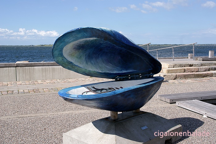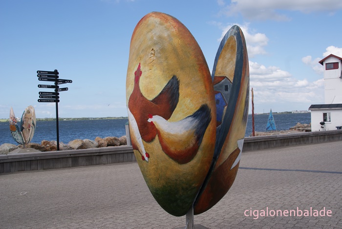 Mais LøgstØr est surtout est un petit port coquillier qui a accueilli en 2005 le festival des moules et de cette époque subsistent encore quelques sculptures déposées sur le port. Et parmi toutes ces coquilles un petit intrus ? Saurez vous le repérer ?