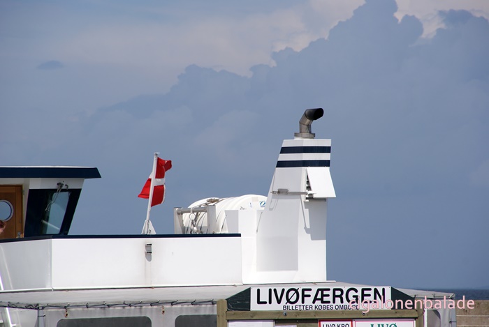 Nous quittons la route 533 pour nous arrêter à Rønbjerg, un port de pêche. C’est d’ici que l’on peut embarquer pour l’ile de LivØ. A peine sommes-nous arrêtés qu’il tombe une forte pluie. Gabriel qui était parti avec les chiens, n’a que le temps de revenir ! Soleil et pluie se succèdent ici à une allure folle … Et le vent mène la danse !